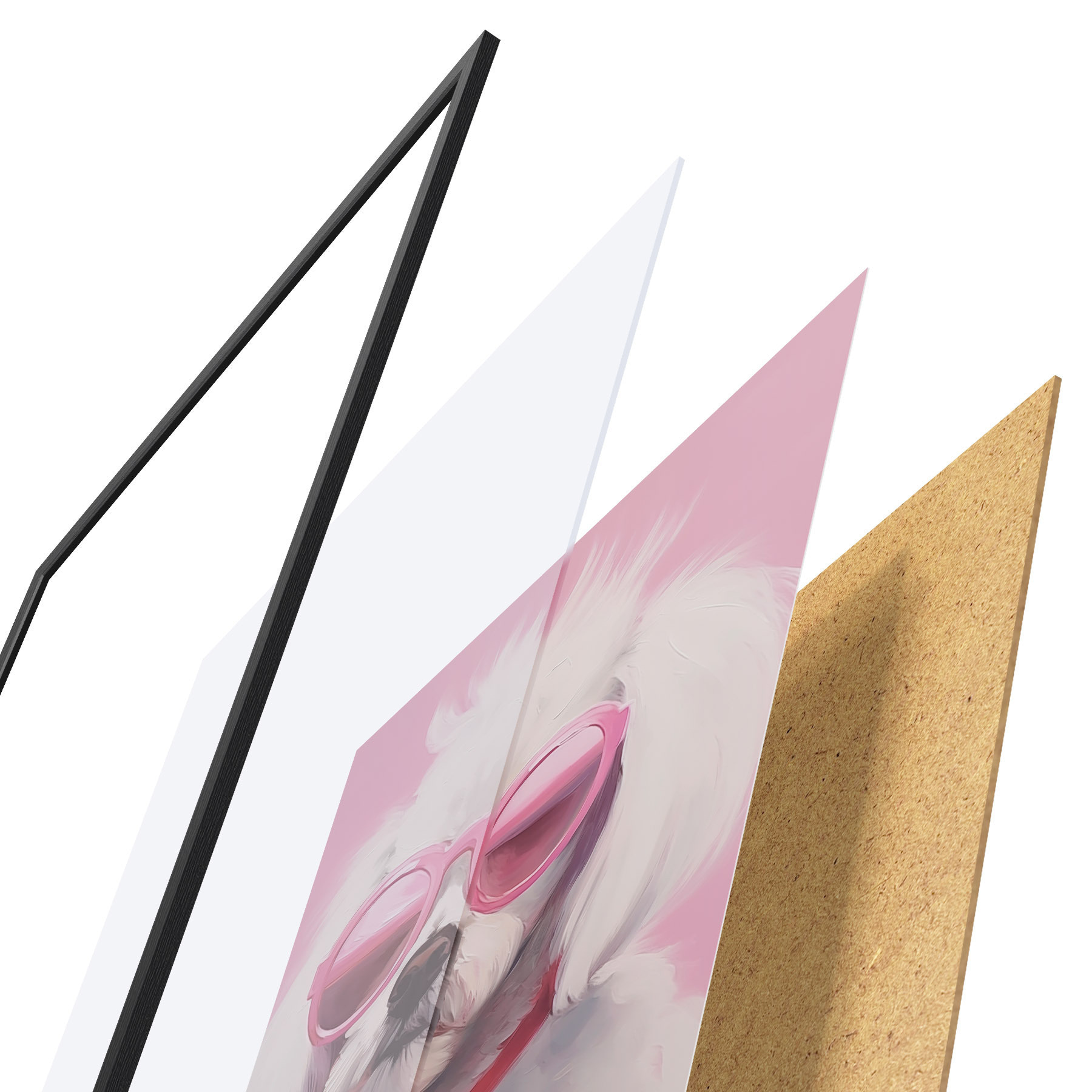 Plakāts sastāv no rāmja, pleksstikla, iespiestā attēla un skaidu plātnes pamatnes. Plakātu var uzreiz piekarināt pie sienas, pateicoties aizmugurē esošajiem stiprinājumiem.