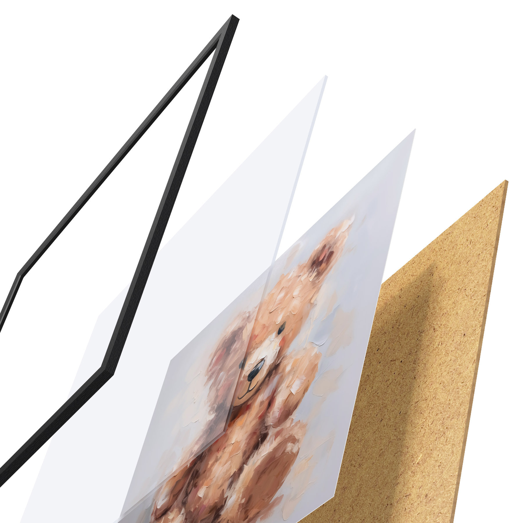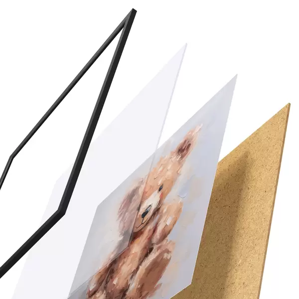 Plakāts sastāv no rāmja, pleksstikla, iespiestā attēla un skaidu plātnes pamatnes. Plakātu var uzreiz piekarināt pie sienas, pateicoties aizmugurē esošajiem stiprinājumiem.
