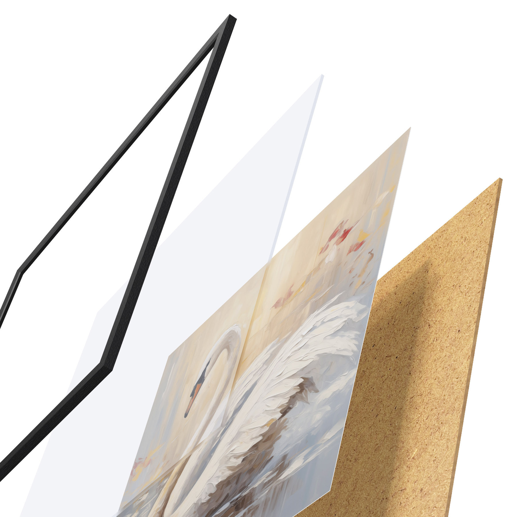 Plakāts sastāv no rāmja, pleksstikla, iespiestā attēla un skaidu plātnes pamatnes. Plakātu var uzreiz piekarināt pie sienas, pateicoties aizmugurē esošajiem stiprinājumiem.