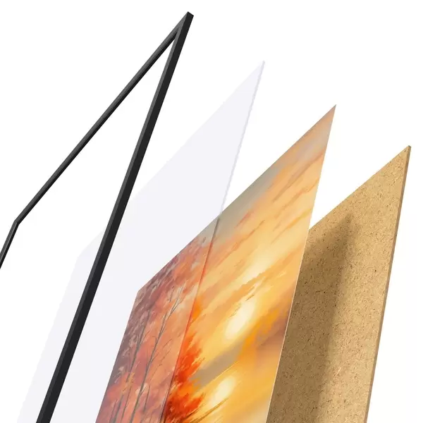 Plakāts sastāv no rāmja, pleksstikla, iespiestā attēla un skaidu plātnes pamatnes. Plakātu var uzreiz piekarināt pie sienas, pateicoties aizmugurē esošajiem stiprinājumiem.