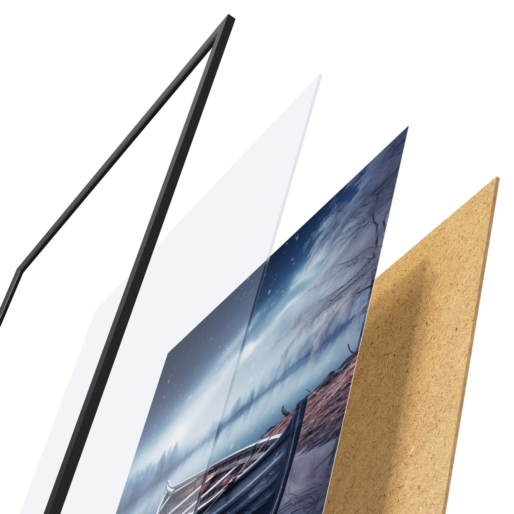 Plakāts sastāv no rāmja, pleksstikla, iespiestā attēla un skaidu plātnes pamatnes. Plakātu var uzreiz piekarināt pie sienas, pateicoties aizmugurē esošajiem stiprinājumiem.