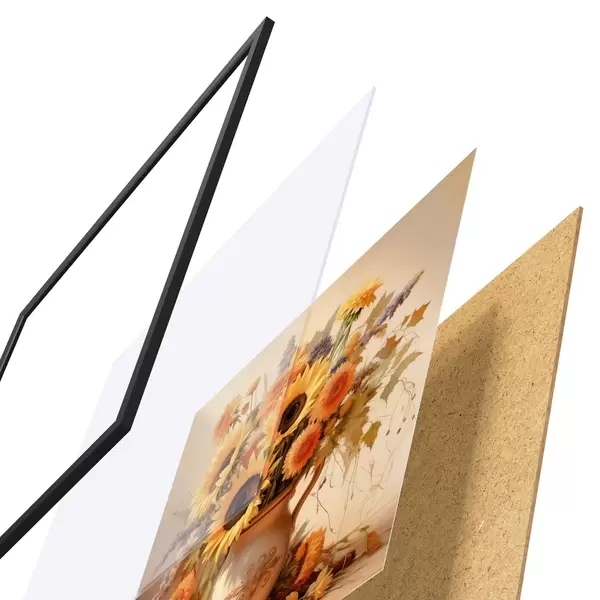 Plakāts sastāv no rāmja, pleksstikla, iespiestā attēla un skaidu plātnes pamatnes. Plakātu var uzreiz piekarināt pie sienas, pateicoties aizmugurē esošajiem stiprinājumiem.
