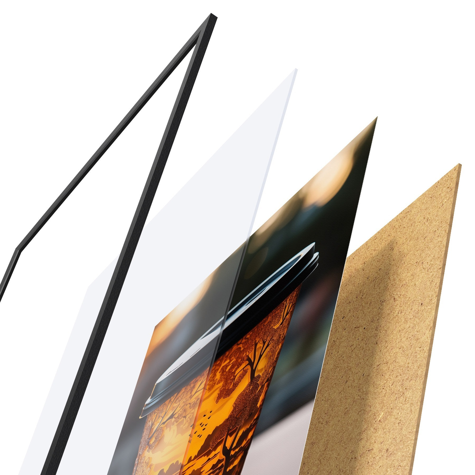 Plakāts sastāv no rāmja, pleksstikla, iespiestā attēla un skaidu plātnes pamatnes. Plakātu var uzreiz piekarināt pie sienas, pateicoties aizmugurē esošajiem stiprinājumiem.