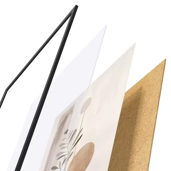 Plakāts sastāv no rāmja, pleksstikla, iespiestā attēla un skaidu plātnes pamatnes. Plakātu var uzreiz piekarināt pie sienas, pateicoties aizmugurē esošajiem stiprinājumiem.