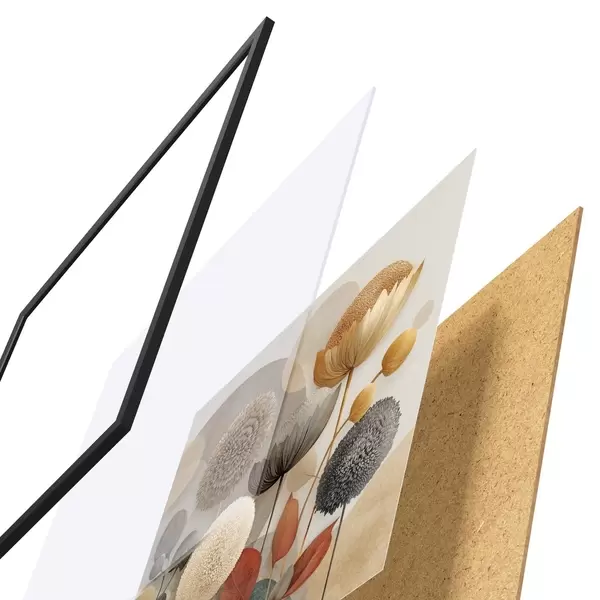 Plakāts sastāv no rāmja, pleksstikla, iespiestā attēla un skaidu plātnes pamatnes. Plakātu var uzreiz piekarināt pie sienas, pateicoties aizmugurē esošajiem stiprinājumiem.
