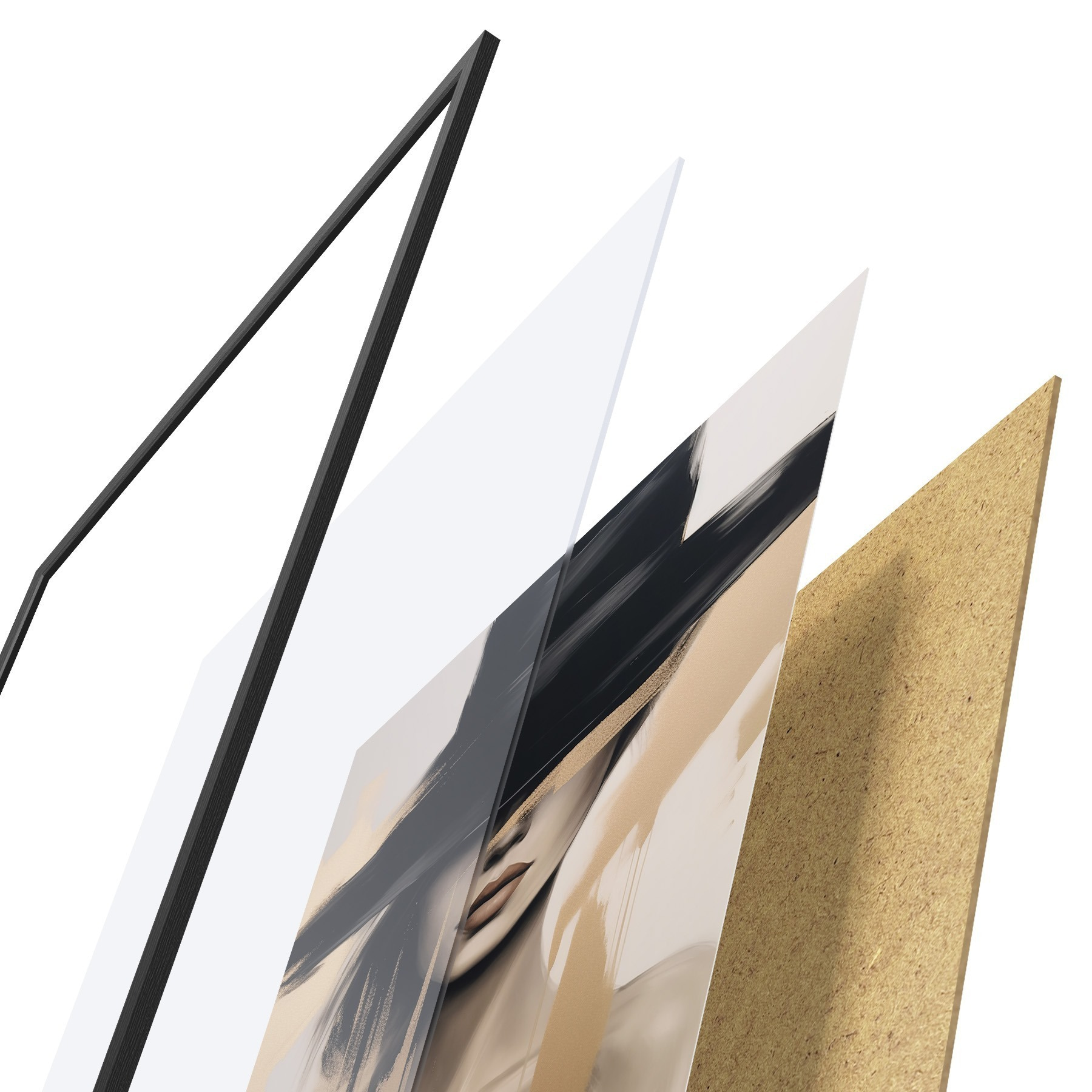 Plakāts sastāv no rāmja, pleksstikla, iespiestā attēla un skaidu plātnes pamatnes. Plakātu var uzreiz piekarināt pie sienas, pateicoties aizmugurē esošajiem stiprinājumiem.