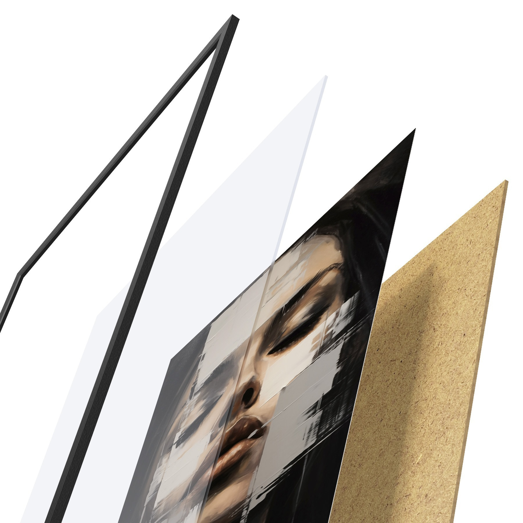 Plakāts sastāv no rāmja, pleksstikla, iespiestā attēla un skaidu plātnes pamatnes. Plakātu var uzreiz piekarināt pie sienas, pateicoties aizmugurē esošajiem stiprinājumiem.