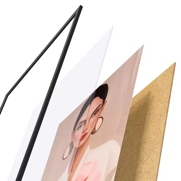 Plakāts sastāv no rāmja, pleksstikla, iespiestā attēla un skaidu plātnes pamatnes. Plakātu var uzreiz piekarināt pie sienas, pateicoties aizmugurē esošajiem stiprinājumiem.