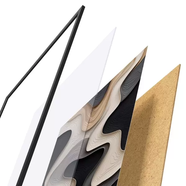 Plakāts sastāv no rāmja, pleksstikla, iespiestā attēla un skaidu plātnes pamatnes. Plakātu var uzreiz piekarināt pie sienas, pateicoties aizmugurē esošajiem stiprinājumiem.