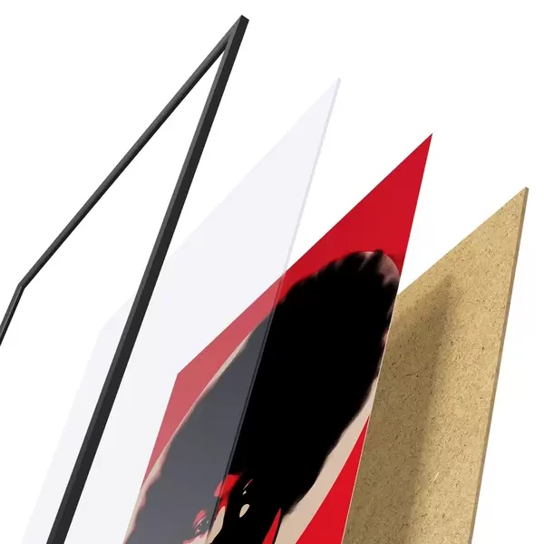 Plakāts sastāv no rāmja, pleksstikla, iespiestā attēla un skaidu plātnes pamatnes. Plakātu var uzreiz piekarināt pie sienas, pateicoties aizmugurē esošajiem stiprinājumiem.