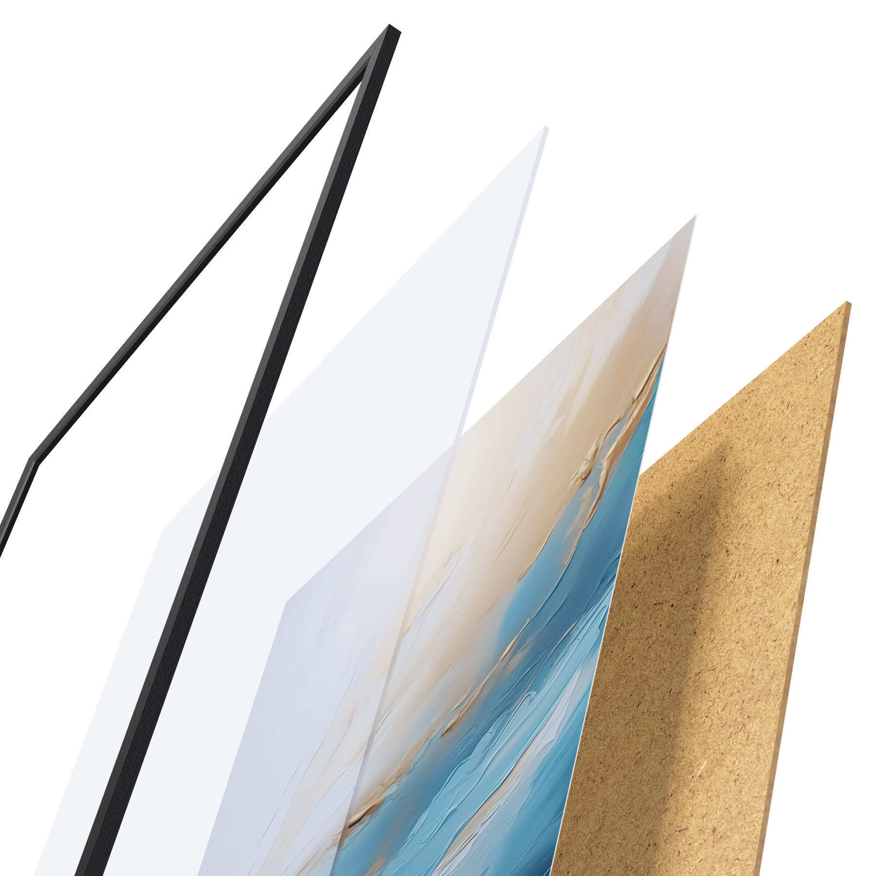 Plakāts sastāv no rāmja, pleksstikla, iespiestā attēla un skaidu plātnes pamatnes. Plakātu var uzreiz piekarināt pie sienas, pateicoties aizmugurē esošajiem stiprinājumiem.
