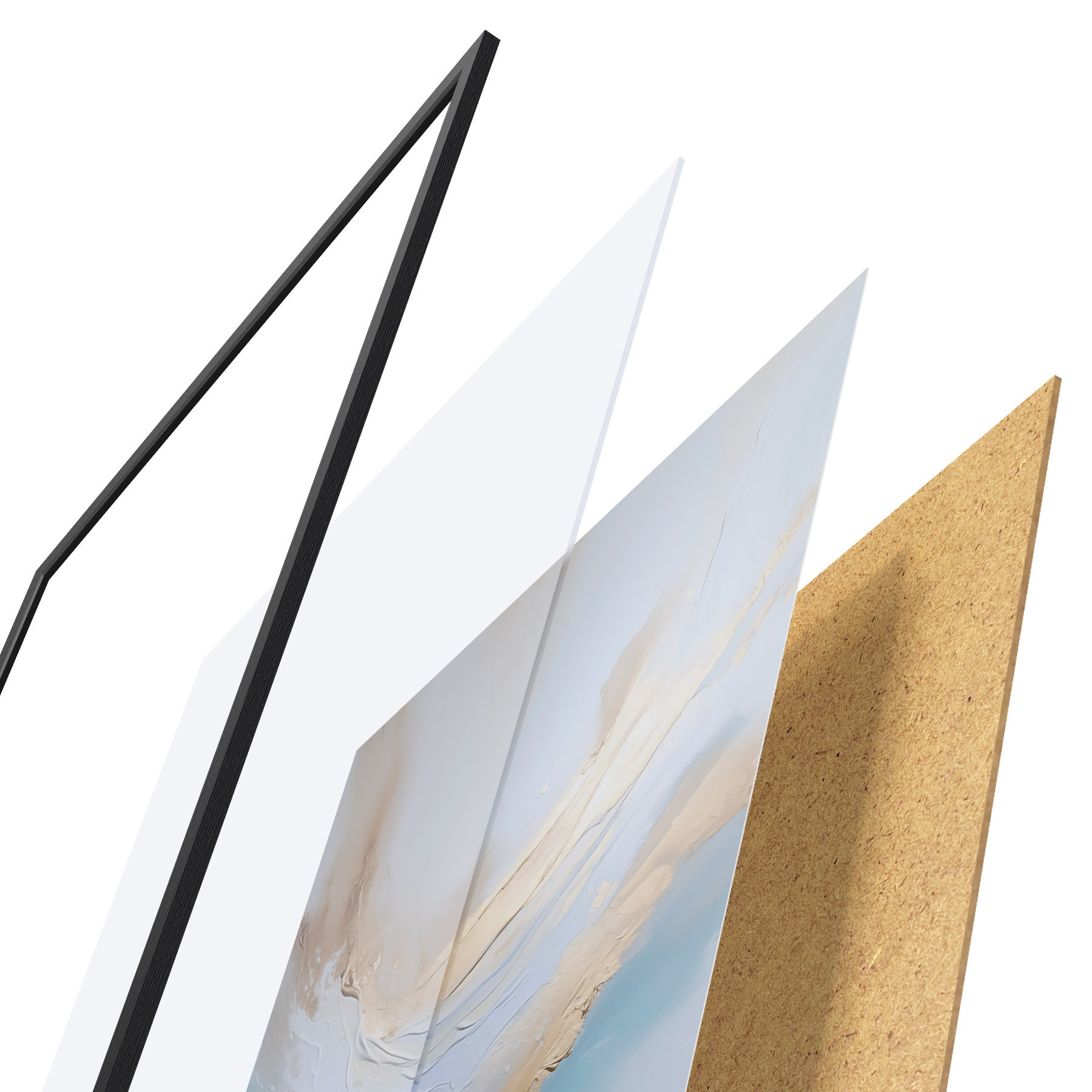 Plakāts sastāv no rāmja, pleksstikla, iespiestā attēla un skaidu plātnes pamatnes. Plakātu var uzreiz piekarināt pie sienas, pateicoties aizmugurē esošajiem stiprinājumiem.