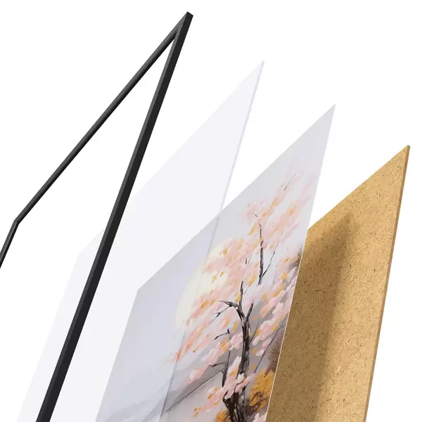 Plakāts sastāv no rāmja, pleksstikla, iespiestā attēla un skaidu plātnes pamatnes. Plakātu var uzreiz piekarināt pie sienas, pateicoties aizmugurē esošajiem stiprinājumiem.