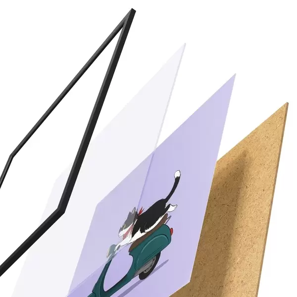 Plakāts sastāv no rāmja, pleksstikla, iespiestā attēla un skaidu plātnes pamatnes. Plakātu var uzreiz piekarināt pie sienas, pateicoties aizmugurē esošajiem stiprinājumiem.