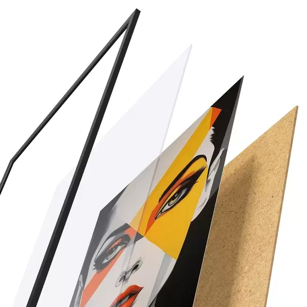 Plakāts sastāv no rāmja, pleksstikla, iespiestā attēla un skaidu plātnes pamatnes. Plakātu var uzreiz piekarināt pie sienas, pateicoties aizmugurē esošajiem stiprinājumiem.