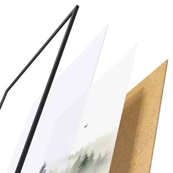Plakāts sastāv no rāmja, pleksstikla, iespiestā attēla un skaidu plātnes pamatnes. Plakātu var uzreiz piekarināt pie sienas, pateicoties aizmugurē esošajiem stiprinājumiem.