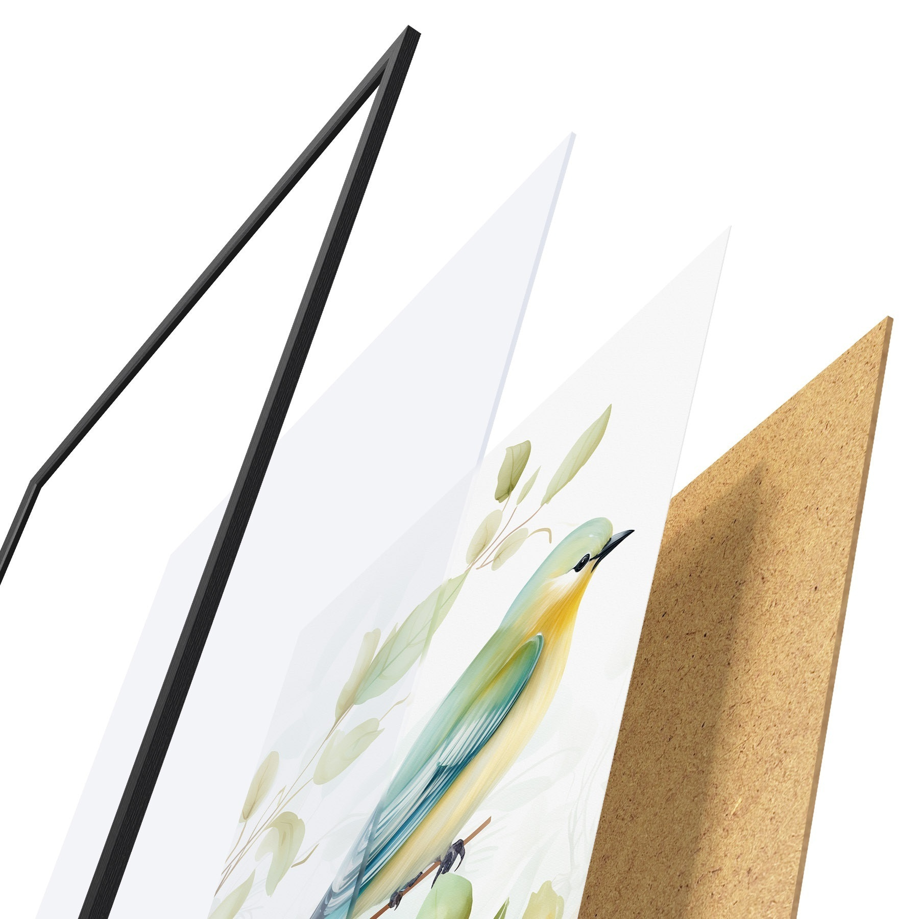 Plakāts sastāv no rāmja, pleksstikla, iespiestā attēla un skaidu plātnes pamatnes. Plakātu var uzreiz piekarināt pie sienas, pateicoties aizmugurē esošajiem stiprinājumiem.