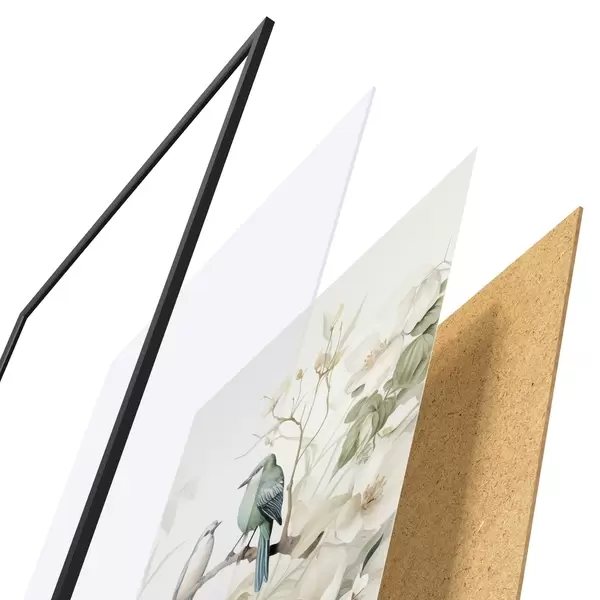 Plakāts sastāv no rāmja, pleksstikla, iespiestā attēla un skaidu plātnes pamatnes. Plakātu var uzreiz piekarināt pie sienas, pateicoties aizmugurē esošajiem stiprinājumiem.