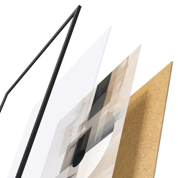 Plakāts sastāv no rāmja, pleksstikla, iespiestā attēla un skaidu plātnes pamatnes. Plakātu var uzreiz piekarināt pie sienas, pateicoties aizmugurē esošajiem stiprinājumiem.