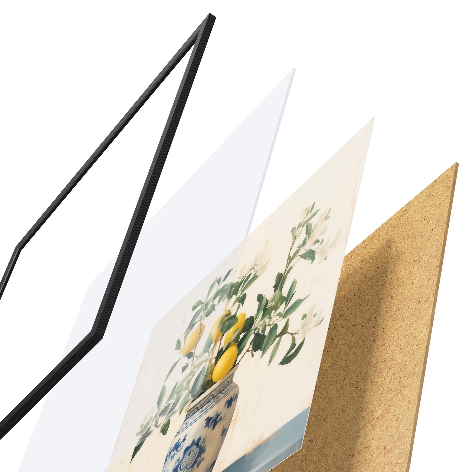 Plakāts sastāv no rāmja, pleksstikla, iespiestā attēla un skaidu plātnes pamatnes. Plakātu var uzreiz piekarināt pie sienas, pateicoties aizmugurē esošajiem stiprinājumiem.