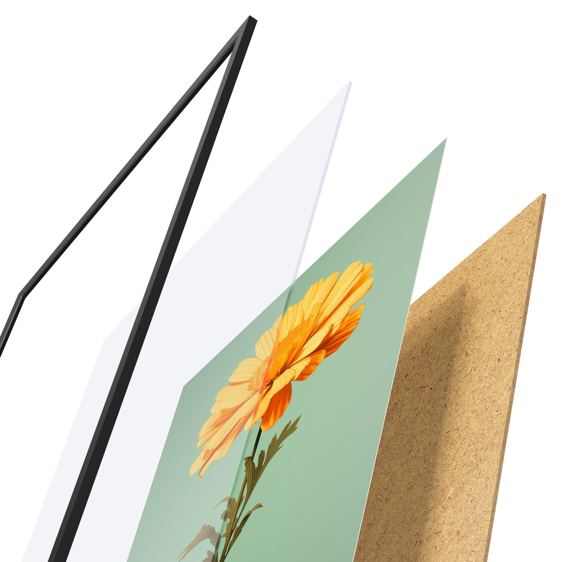 Plakāts sastāv no rāmja, pleksstikla, iespiestā attēla un skaidu plātnes pamatnes. Plakātu var uzreiz piekarināt pie sienas, pateicoties aizmugurē esošajiem stiprinājumiem.