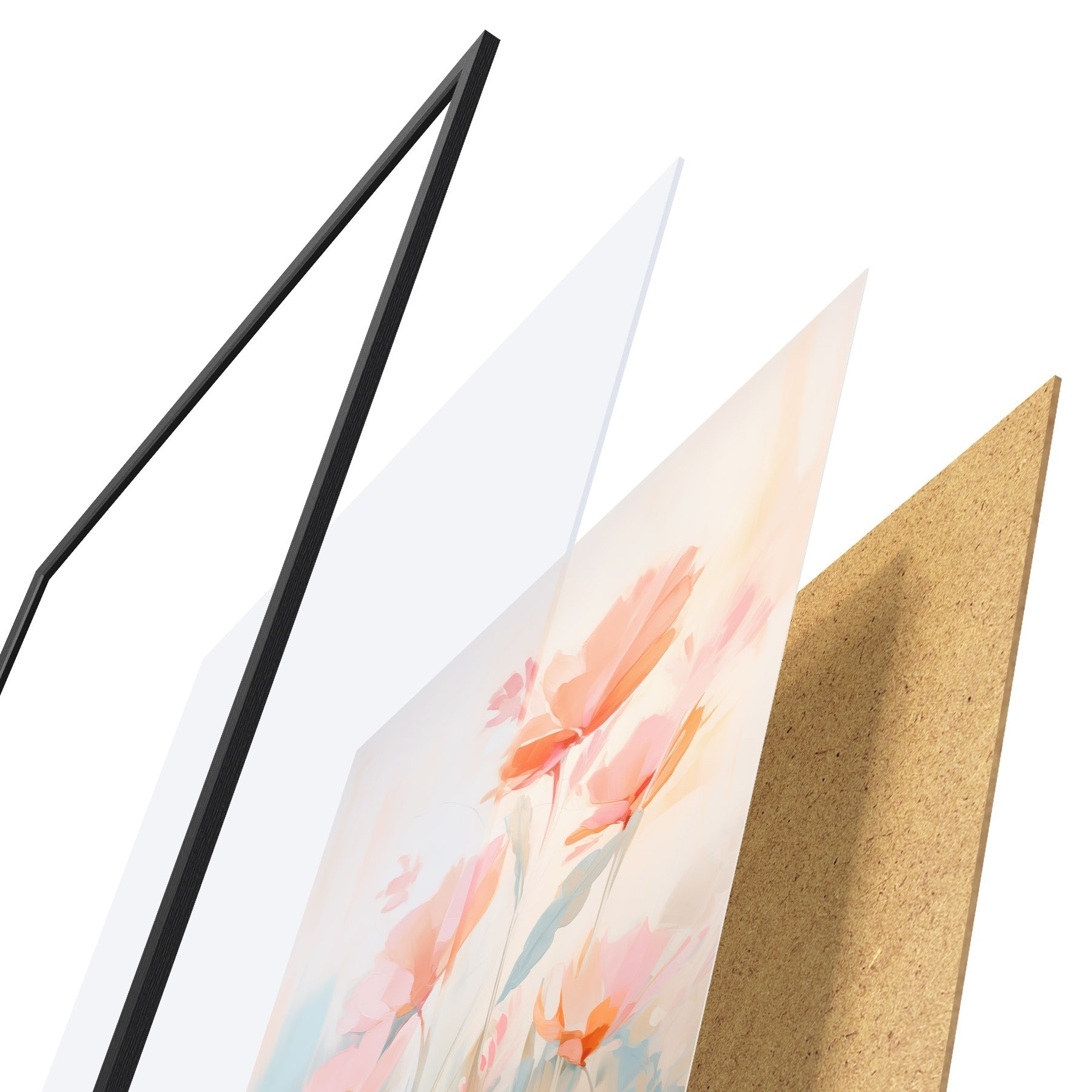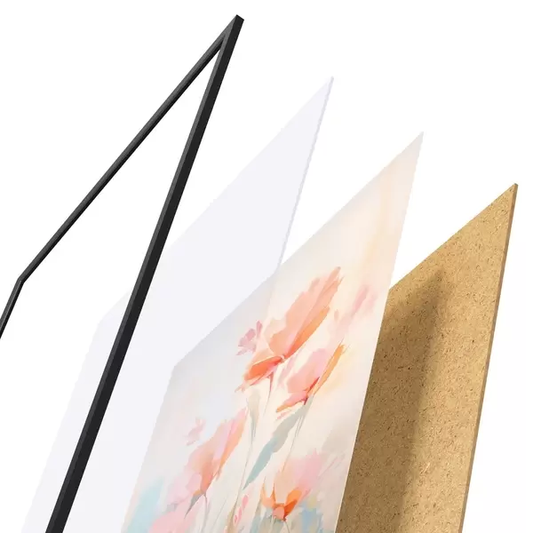 Plakāts sastāv no rāmja, pleksstikla, iespiestā attēla un skaidu plātnes pamatnes. Plakātu var uzreiz piekarināt pie sienas, pateicoties aizmugurē esošajiem stiprinājumiem.