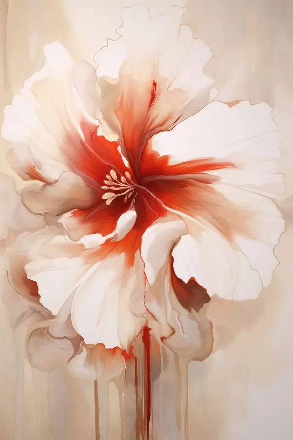 Plakāts Tuva uzņēmuma balta un sarkana zieda ar puscaurspīdīgiem ziedlapiem un plūstošiem krāsas pilieniem Nr f46941