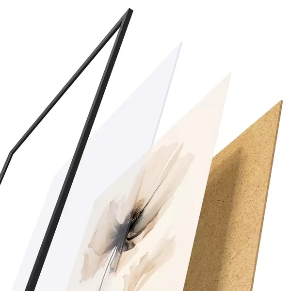 Plakāts sastāv no rāmja, pleksstikla, iespiestā attēla un skaidu plātnes pamatnes. Plakātu var uzreiz piekarināt pie sienas, pateicoties aizmugurē esošajiem stiprinājumiem.