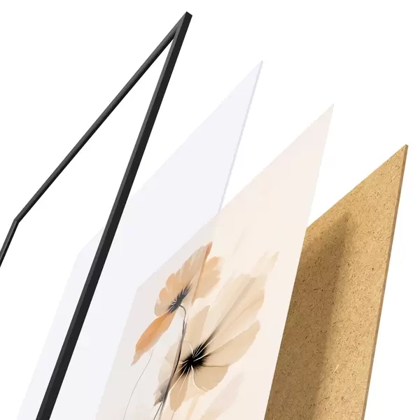 Plakāts sastāv no rāmja, pleksstikla, iespiestā attēla un skaidu plātnes pamatnes. Plakātu var uzreiz piekarināt pie sienas, pateicoties aizmugurē esošajiem stiprinājumiem.