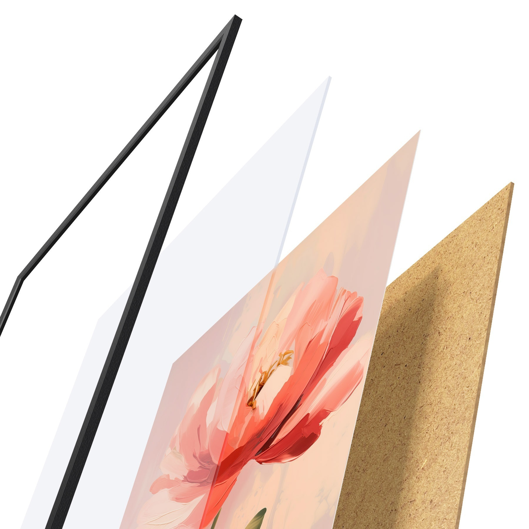 Plakāts sastāv no rāmja, pleksstikla, iespiestā attēla un skaidu plātnes pamatnes. Plakātu var uzreiz piekarināt pie sienas, pateicoties aizmugurē esošajiem stiprinājumiem.