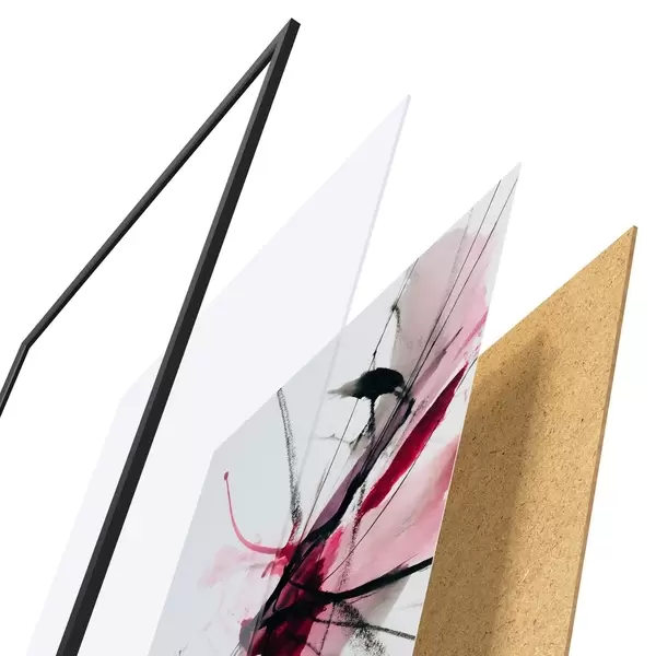 Plakāts sastāv no rāmja, pleksstikla, iespiestā attēla un skaidu plātnes pamatnes. Plakātu var uzreiz piekarināt pie sienas, pateicoties aizmugurē esošajiem stiprinājumiem.