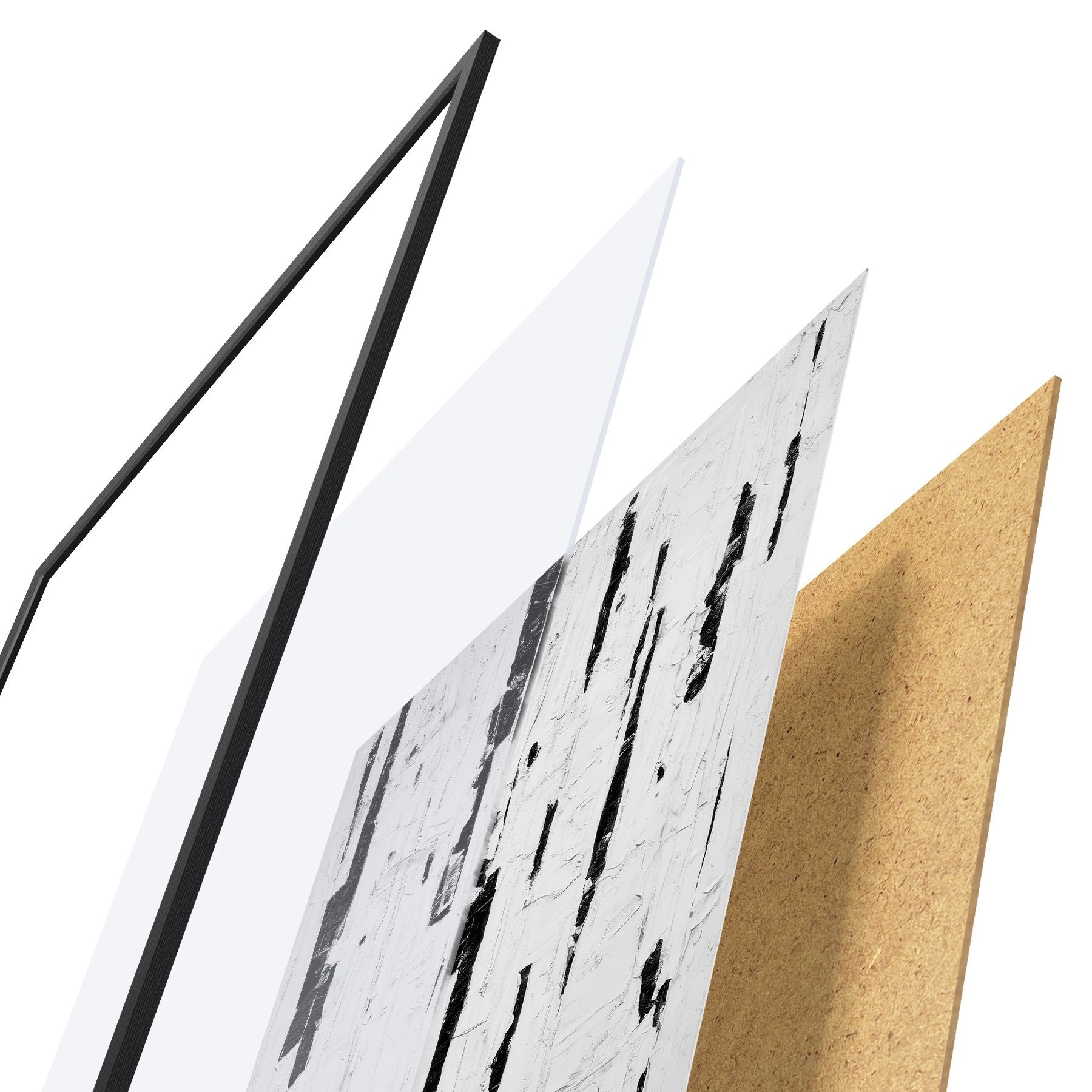 Plakāts sastāv no rāmja, pleksstikla, iespiestā attēla un skaidu plātnes pamatnes. Plakātu var uzreiz piekarināt pie sienas, pateicoties aizmugurē esošajiem stiprinājumiem.