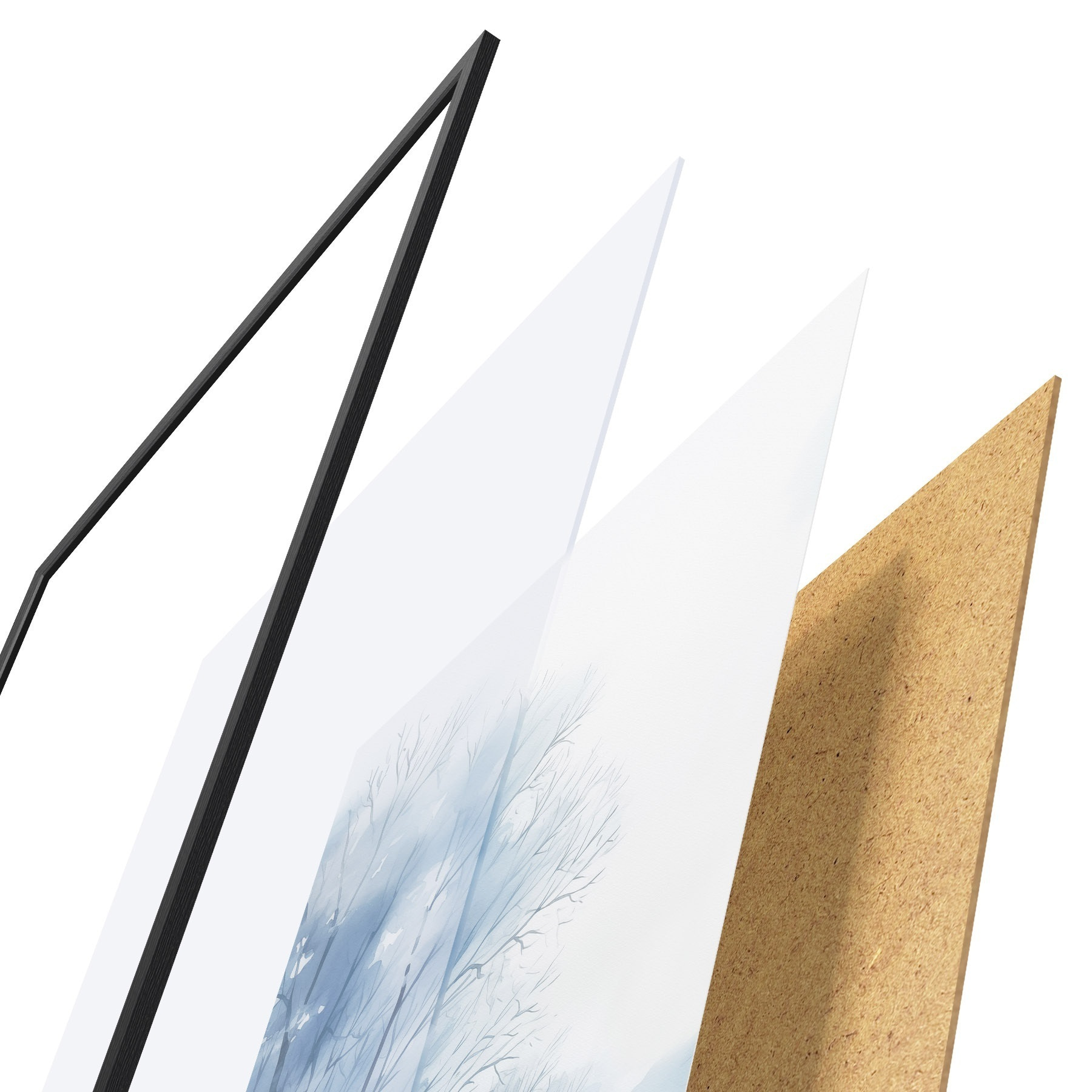 Plakāts sastāv no rāmja, pleksstikla, iespiestā attēla un skaidu plātnes pamatnes. Plakātu var uzreiz piekarināt pie sienas, pateicoties aizmugurē esošajiem stiprinājumiem.