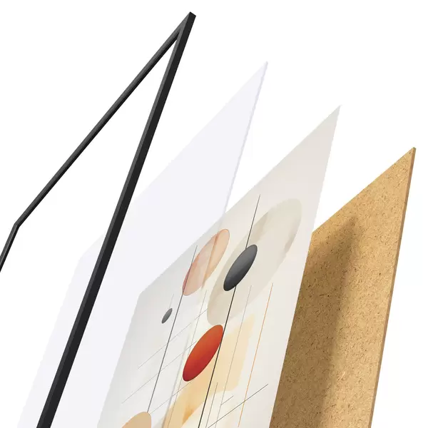 Plakāts sastāv no rāmja, pleksstikla, iespiestā attēla un skaidu plātnes pamatnes. Plakātu var uzreiz piekarināt pie sienas, pateicoties aizmugurē esošajiem stiprinājumiem.