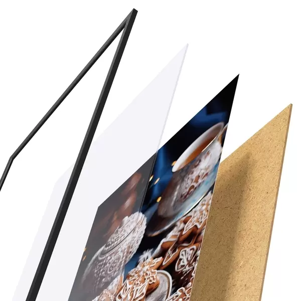 Plakāts sastāv no rāmja, pleksstikla, iespiestā attēla un skaidu plātnes pamatnes. Plakātu var uzreiz piekarināt pie sienas, pateicoties aizmugurē esošajiem stiprinājumiem.