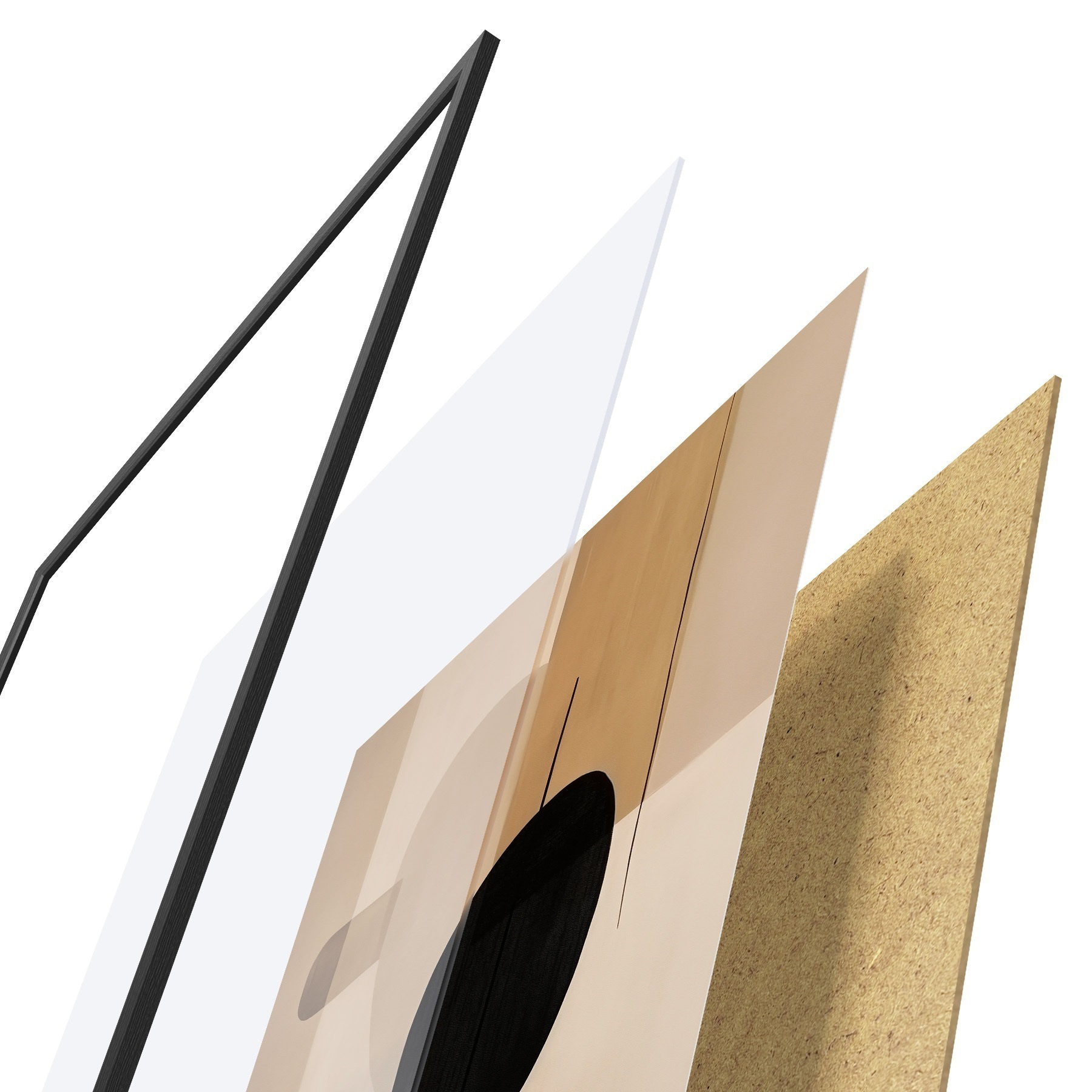 Plakāts sastāv no rāmja, pleksstikla, iespiestā attēla un skaidu plātnes pamatnes. Plakātu var uzreiz piekarināt pie sienas, pateicoties aizmugurē esošajiem stiprinājumiem.