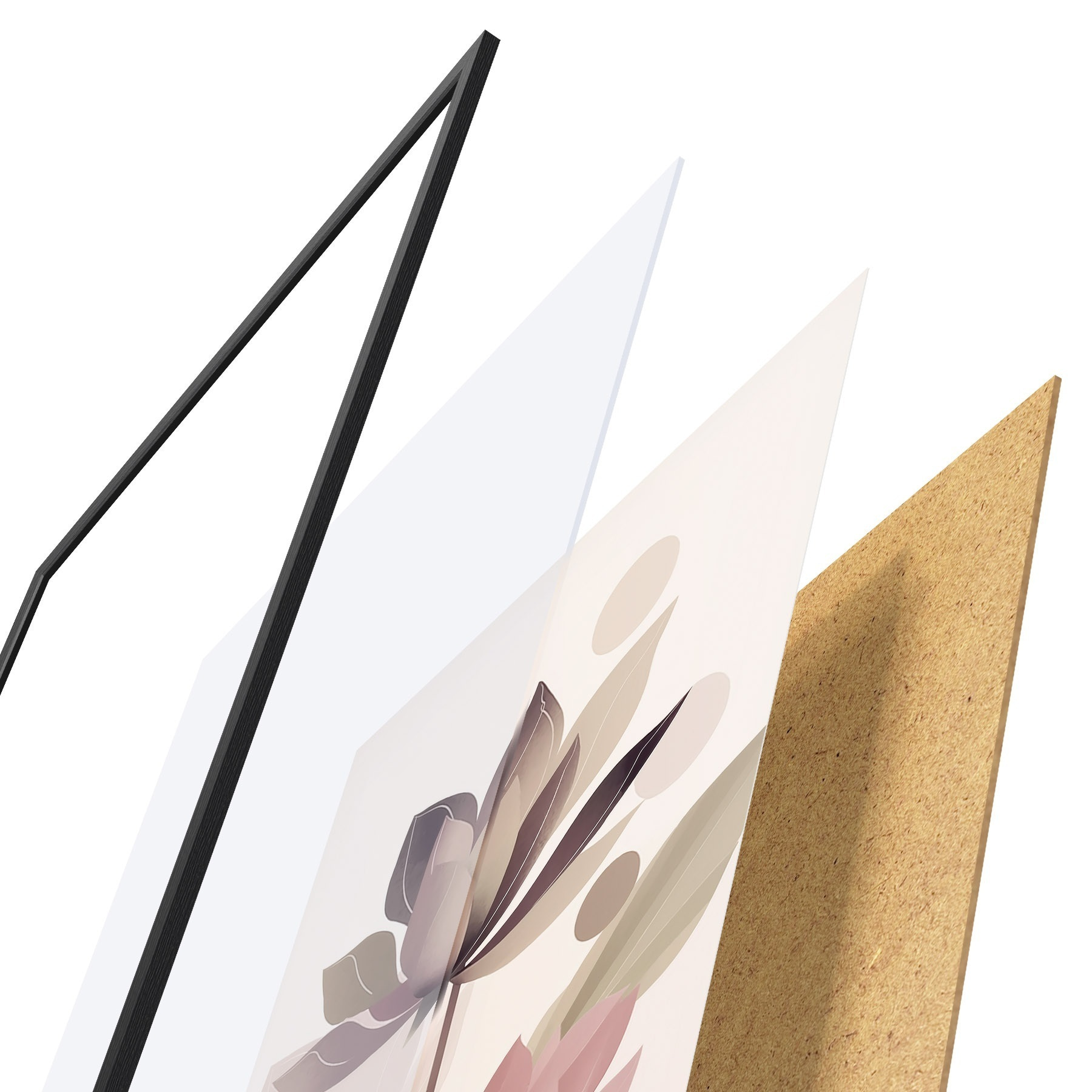 Plakāts sastāv no rāmja, pleksstikla, iespiestā attēla un skaidu plātnes pamatnes. Plakātu var uzreiz piekarināt pie sienas, pateicoties aizmugurē esošajiem stiprinājumiem.