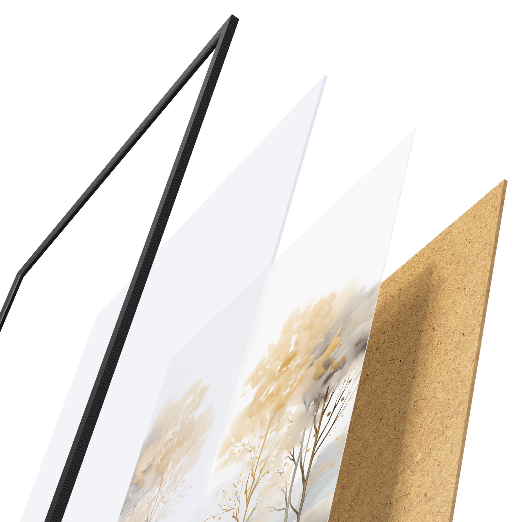 Plakāts sastāv no rāmja, pleksstikla, iespiestā attēla un skaidu plātnes pamatnes. Plakātu var uzreiz piekarināt pie sienas, pateicoties aizmugurē esošajiem stiprinājumiem.