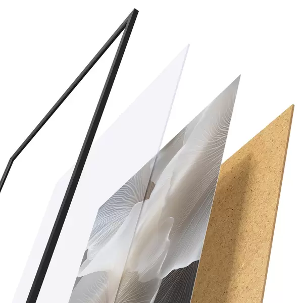 Plakāts sastāv no rāmja, pleksstikla, iespiestā attēla un skaidu plātnes pamatnes. Plakātu var uzreiz piekarināt pie sienas, pateicoties aizmugurē esošajiem stiprinājumiem.