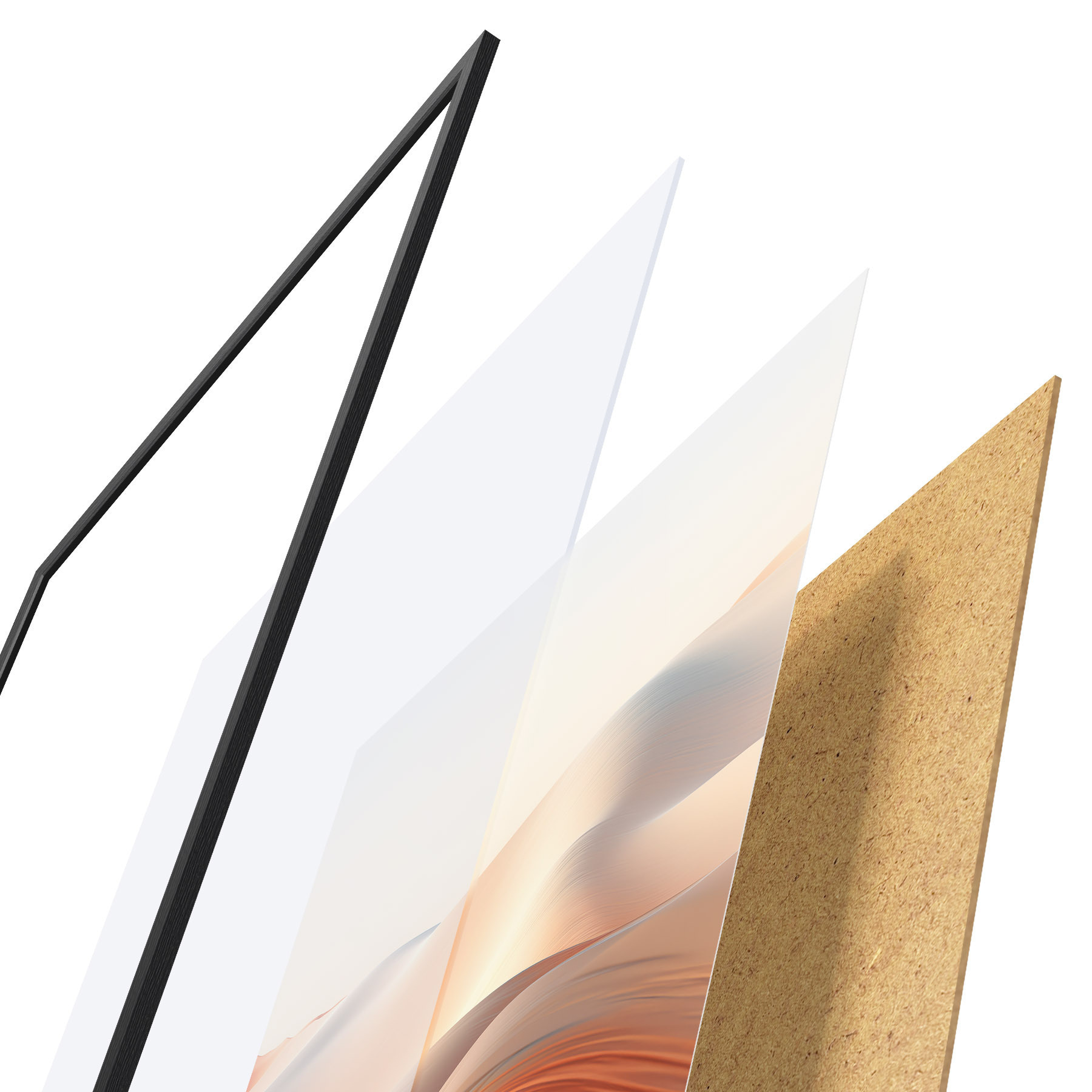 Plakāts sastāv no rāmja, pleksstikla, iespiestā attēla un skaidu plātnes pamatnes. Plakātu var uzreiz piekarināt pie sienas, pateicoties aizmugurē esošajiem stiprinājumiem.