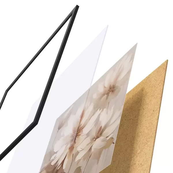 Plakāts sastāv no rāmja, pleksstikla, iespiestā attēla un skaidu plātnes pamatnes. Plakātu var uzreiz piekarināt pie sienas, pateicoties aizmugurē esošajiem stiprinājumiem.