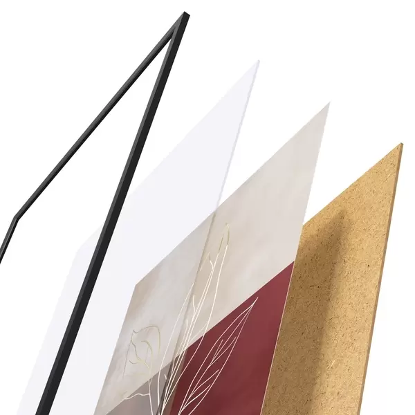 Plakāts sastāv no rāmja, pleksstikla, iespiestā attēla un skaidu plātnes pamatnes. Plakātu var uzreiz piekarināt pie sienas, pateicoties aizmugurē esošajiem stiprinājumiem.
