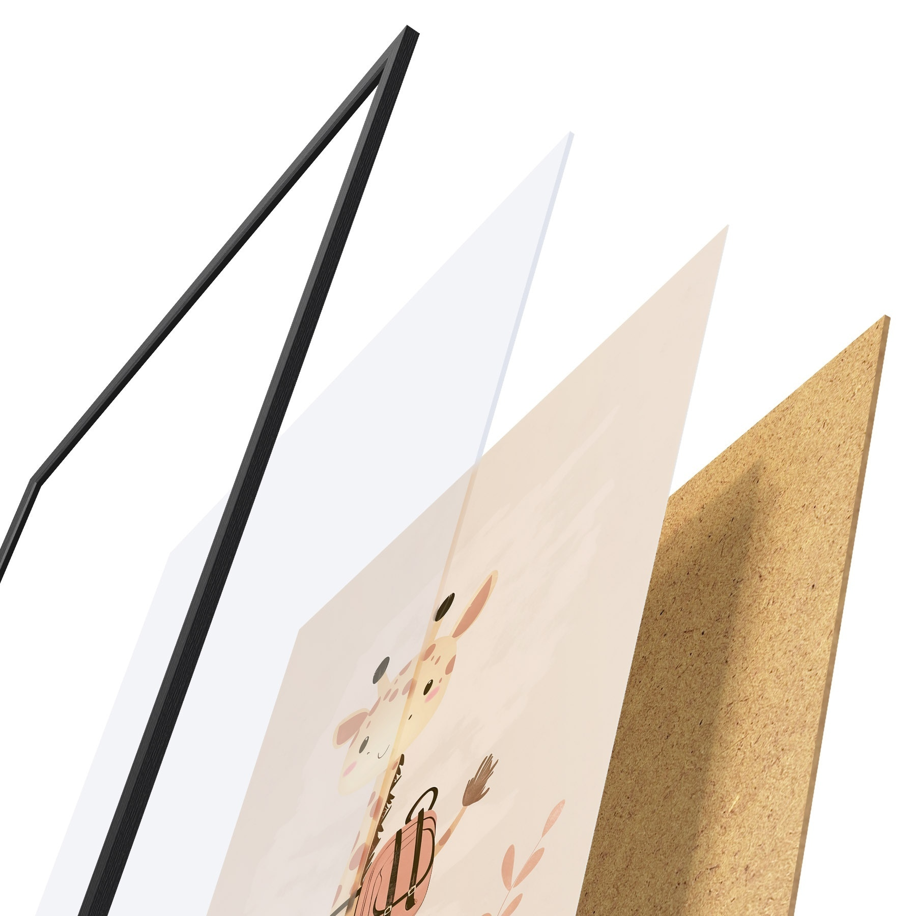 Plakāts sastāv no rāmja, pleksstikla, iespiestā attēla un skaidu plātnes pamatnes. Plakātu var uzreiz piekarināt pie sienas, pateicoties aizmugurē esošajiem stiprinājumiem.