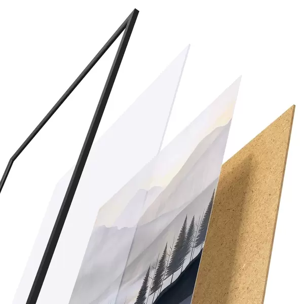 Plakāts sastāv no rāmja, pleksstikla, iespiestā attēla un skaidu plātnes pamatnes. Plakātu var uzreiz piekarināt pie sienas, pateicoties aizmugurē esošajiem stiprinājumiem.