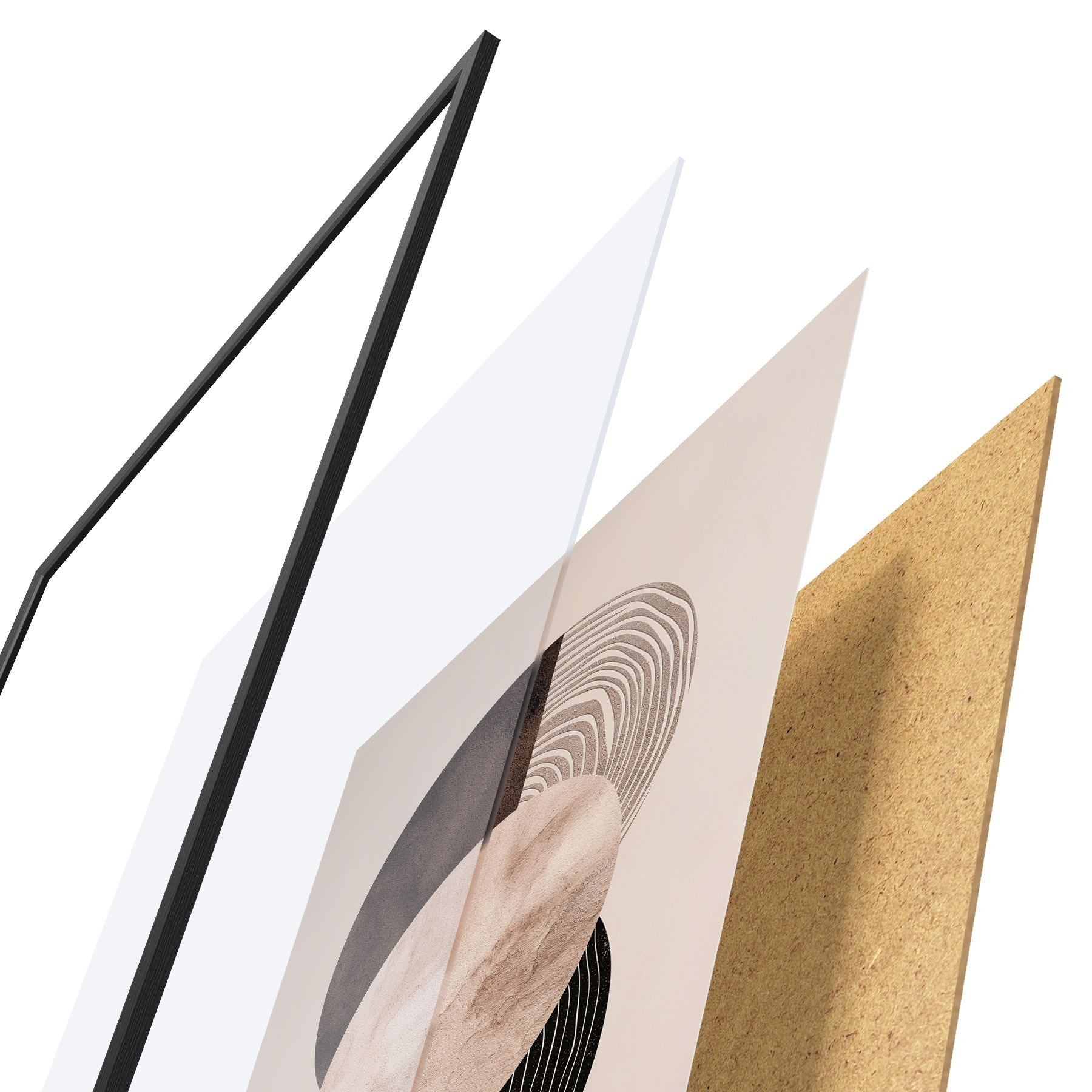 Plakāts sastāv no rāmja, pleksstikla, iespiestā attēla un skaidu plātnes pamatnes. Plakātu var uzreiz piekarināt pie sienas, pateicoties aizmugurē esošajiem stiprinājumiem.