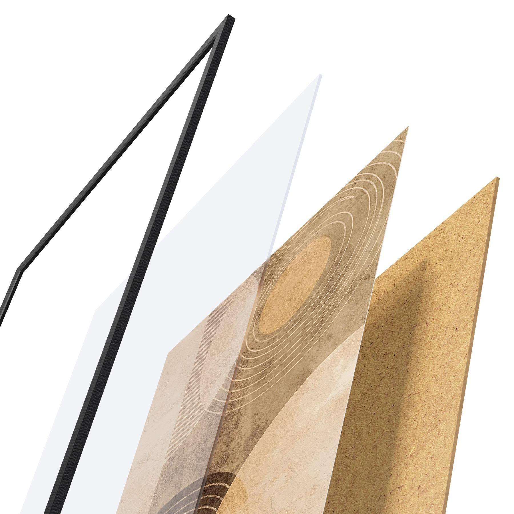 Plakāts sastāv no rāmja, pleksstikla, iespiestā attēla un skaidu plātnes pamatnes. Plakātu var uzreiz piekarināt pie sienas, pateicoties aizmugurē esošajiem stiprinājumiem.