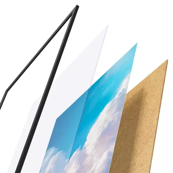 Plakāts sastāv no rāmja, pleksstikla, iespiestā attēla un skaidu plātnes pamatnes. Plakātu var uzreiz piekarināt pie sienas, pateicoties aizmugurē esošajiem stiprinājumiem.