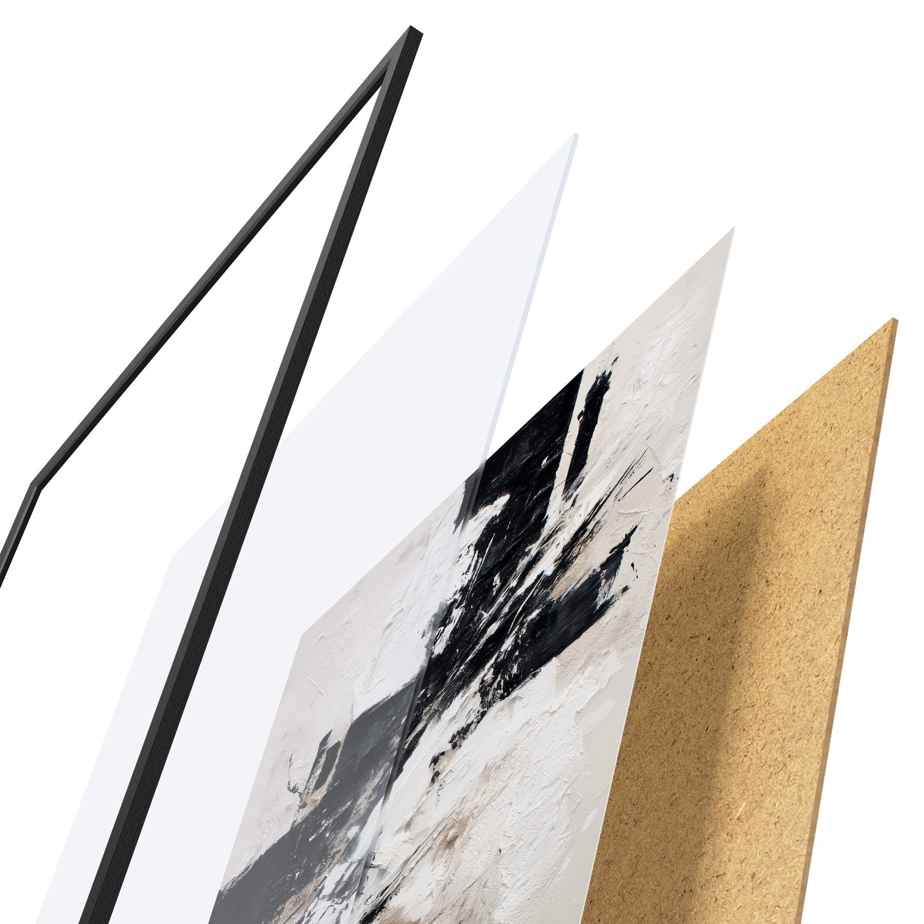 Plakāts sastāv no rāmja, pleksstikla, iespiestā attēla un skaidu plātnes pamatnes. Plakātu var uzreiz piekarināt pie sienas, pateicoties aizmugurē esošajiem stiprinājumiem.
