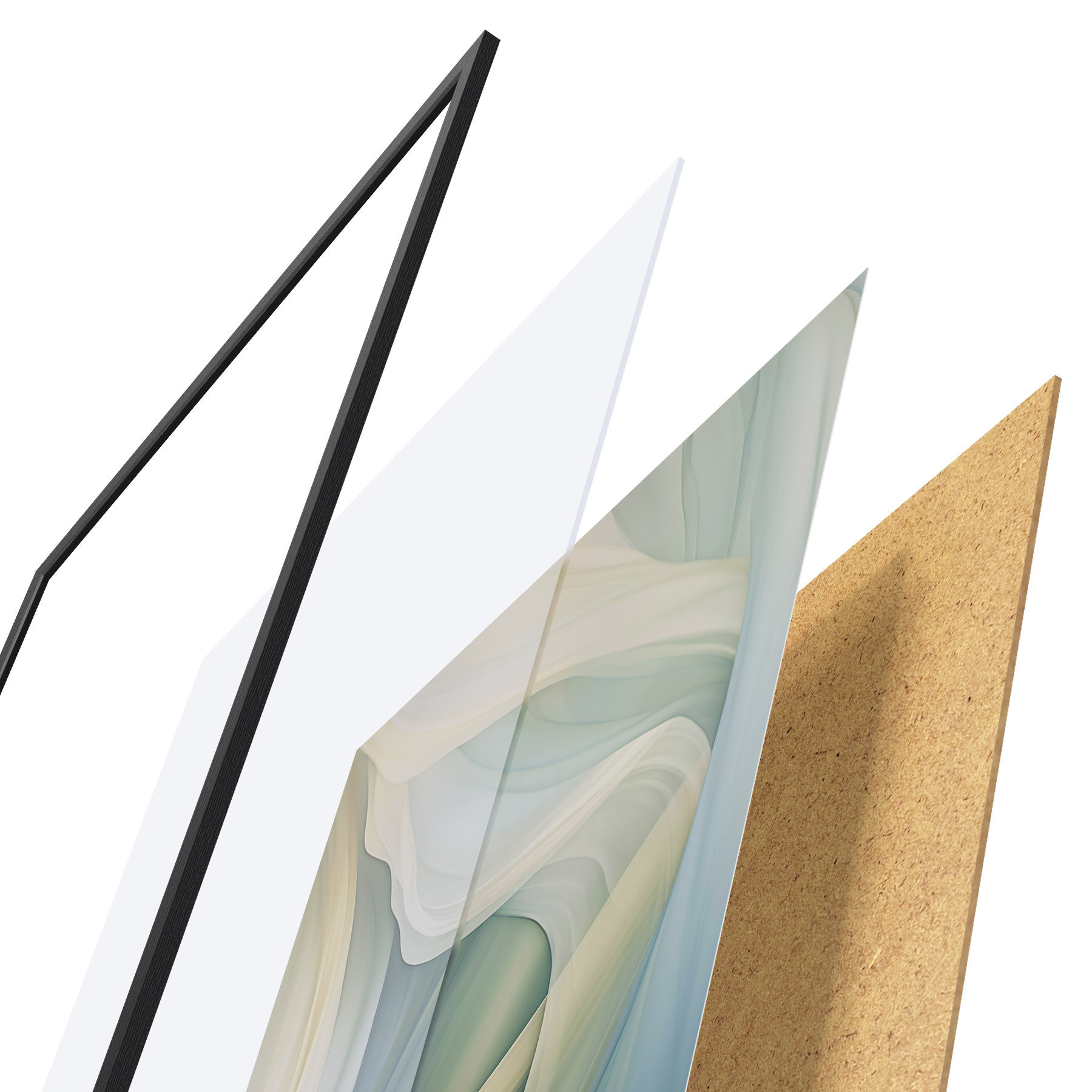 Plakāts sastāv no rāmja, pleksstikla, iespiestā attēla un skaidu plātnes pamatnes. Plakātu var uzreiz piekarināt pie sienas, pateicoties aizmugurē esošajiem stiprinājumiem.