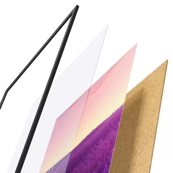 Plakāts sastāv no rāmja, pleksstikla, iespiestā attēla un skaidu plātnes pamatnes. Plakātu var uzreiz piekarināt pie sienas, pateicoties aizmugurē esošajiem stiprinājumiem.